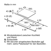 - Minimaalsed niši mõõdud paigaldamiseks (K x L x S): 43 x 560-560 x 490-500 mm