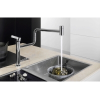Dornbrachti mudel Tara Ultra Pivot on väga kaasaegne liitmik ja oma kuju teeb sellest praktilise abimehe köögis. See on esimene ühe hoovaga segisti, mida saab kasutada kogu köögisaarel – 360° tegevusraadiusega saab köögi üksikuid kasutusalasid lihtsalt omavahel ühendada. Tara Ultra Pivot köögisegisti kraan tähistab disaini, mugavust ja ergonoomilisust.