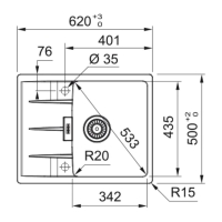Franke Centro CNG 611-62 sisseehitatud valamu, alates 45 cm valamukapist, Fragranit DuraKleen Plus, värvus kiltkivihall