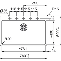 Franke Maris MRG 610-73 A sisseehitatud kraanikauss, alates 80 cm valamukapist, Fragranit+, segistipangaga, pöördnupu klapp, värvus kiltkivihall, 154