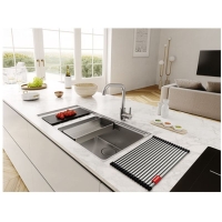 Franke Mythos MYX 211 sisseehitatud kraanikauss, lame velg, harjatud roostevaba teras, kraanikauss paremal