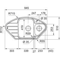 Franke Spark SKX 651-95 E nurgavalamu , 945 mm, sile roostevaba teras, pöördnupp