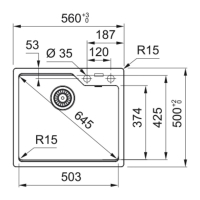 - Väljalõike paigaldus: 540 x 480 mm R15