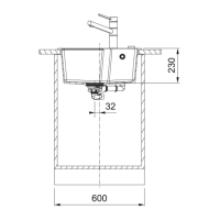 Franke Urban UBG 610-56 sisseehitatud valamu, alates 60 cm valamukapist, Fragranit DuraKleen Plus, ekstsentriklapp, värvus Must Matt - Must kollektsioon
