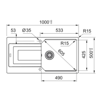 - tööpinna paksus: vähemalt .3 mm Ausschnitt Einbau: 980 x 480 mm R15