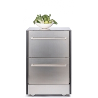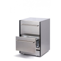- Matist roostevabast terasest valmistatud köögikäru ONO seeriast kahe sahtliga külmikuga.