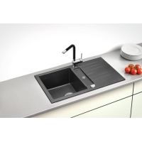 Kaasaegne komposiitvärv Corto 7 funktsionaalse 7 funktsionaalsega kombineerib a8. Graniidi välimuse ja teravate kontuuridega vormide koosmäng pakub kööki stiilselt ilmestavat esiletõstmist. Valamu valmistamisel kasutatakse spetsiaalset komposiitmaterjali. Materjali iseloomustab pealispinna sametine tunnetus ning see avaldab muljet oma kriimustus- ja plekikindlate omadustega. Seotud äravoolutahvel koos äravooluga sobib tasside, klaaside ja väikeste kööginõude hoidmiseks. Köögivalamu komplekt sisaldab graniidi välimusega sobivat ühe hoovaga segisti liitmikku, sealhulgas keraamilist kassetti. Pöörlev tila pakub toidu pesemisel ja valmistamisel suurt paindlikkust. Tänu mõlemal küljel olevatele aukudele saab valamu ja liitmiku integreerida vasakule või paremale küljele. Ideaalsed tingimused tõhusaks töövooguks köögis. Tarnekomplekti kuuluvad ka kurna korvklapp ja kroomitud pinnaga pöörlev ekstsentrikukomplekt.