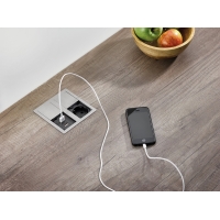 / The beehitatud Plaza 2-sisene korpusega praktiline samal ajal. Lisaks visuaalsetele ja funktsionaalsetele aspektidele avaldab pistikupesa element muljet väikese paigaldussügavusega, mis avab arvukalt paigaldusvõimalusi. See hõlmab nii töötasapinda kui ka köögikappide esipaneele ja külgseinu. Elegantse topeltlibiseva kaane alla on peidetud nii pesa kui ka A-tüüpi USB-port ja C-tüüpi port. See pakub usaldusväärset kaitset tolmu ja pritsmevee eest vastavalt kaitseklassile IP54. Veelgi suurema ohutuse tagamiseks on ka suurendatud kontaktikaitse. Kaks katet avatakse eraldi kerge survega. Seejärel saab üksikuid köögiabilisi elektriga varustada ning mobiiltelefone ja tahvelarvuteid laadida ja samal ajal kasutada. Üldvarustusse kuulub lahtine Schuko pistik ja võrguühenduskaabel. Köögiarhitektuuriga sobitamiseks on võimalik valida katete erinevate värviversioonide vahel.