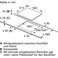 - Minimaalsed niši mõõdud paigaldamiseks (K x L x S): 43 x 560 x 490-500 mm