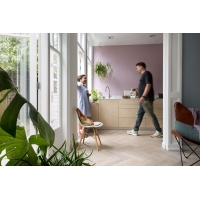 Quooker Fusion Round COMBI on segisti, millest aurustub soovitud külm, soe või 100°C vesi. COMBI reservuaar on eriti soovitatav, kui ootate muidu kaua sooja vett. COMBI reservuaar asendab boilerit või läbivooluboilerit ja varustab sind koheselt kuni 15 liitrit 60 kraadist või kuni 27 liitrit 40 kraadist sooja veega. Keeva vee saamiseks vajutage ja keerake soonega rõngast. Valgusrõngas muutub nüüd punaseks, kui vesi keeb. See tähendab, et keeva veega ei ole võimalik kogemata kraanida, kuigi tegelikult tahtsite kraanida jahutatud või sooja vett. Tänu patenteeritud kõrgvaakumiisolatsioonile kasutab Quookeri kraan väga vähe energiat. Ooterežiimis on energiakulud vaid umbes 5 senti päevas.
