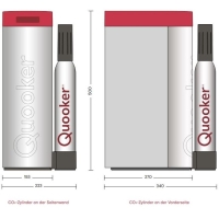 - CUBE asub teie köögikapis Quookeri veehoidla kõrval. Seal on filter, mis puhastab vett. Vee kvaliteet on võrreldav tavaliste veepudelitega. Mahutil on CO₂-balloon, mis võimaldab nautida 60 liitrit külma mullivett oma Quookeri kraanist.