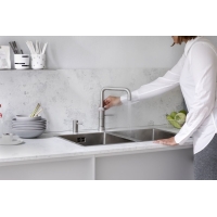 Quooker Nordic-Square on segisti, millest mullitab välja 100°C keeva vett. Praktiline asi Quookeri kohta: kraan on tööpinnal ja reservuaar (boiler) on selle all olevas kapis. Saate valida sobiva segistiga keedukraani või uue Quooker Fusioni vahel kuuma, külma ja keeva vee jaoks. Mõlemad Quookeri liitmikud on võrdselt ohutud ja saadaval on kaheksa mudelit, millest igaühel on kolm erinevat pinnaviimistlust. Tänu patenteeritud kõrgvaakumiisolatsioonile kasutab Quookeri kraan väga vähe energiat. Ooterežiimis on energiakulud vaid umbes 5 senti päevas.