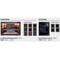 Combi-Steam multifunktsionaalne elektriahi koos INNVENT®-iga: kahekordne ventilatsioonisüsteem optimaalseks soojuse jaotumiseks küpsetuskambris. TFT-ekraaniga programmeerija – 15 funktsiooni ja 37 eelseadistatud funktsiooni.
