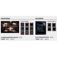 Combi-Steam multifunktsionaalne elektriahi koos INNVENT®-iga: kahekordne ventilatsioonisüsteem optimaalseks soojuse jaotumiseks küpsetuskambris. TFT-ekraaniga programmeerija – 15 funktsiooni ja 37 eelseadistatud funktsiooni.