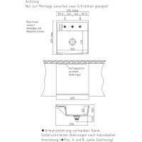 - See valamu sobib paigaldamiseks ainult kahe kapi vahele. Töödeldud tagakülg ei ole suletud; Uputuspaigaldus ega kasutamine allpaigaldatava valamuna ei ole võimalik!
