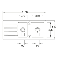 - Valamu mõõdud: P x L 1160 x 510 mm
