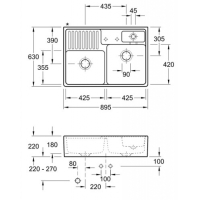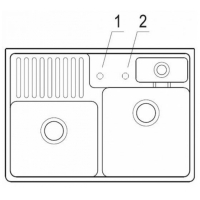 - Valik “Aukude puurimine tootja järgi”: Kui soovite, et tootja teeks ohutuse huvides augu puurimise tehases, valige see valik. Selleks vajame kraaniava(de) numbreid/asukohti, mille V & B peaksid teie jaoks puurima. Käsitsi käitatava valamu versiooni jaoks vajate liitmiku jaoks 1 kraaniava; ekstsentrilise tööga versiooni jaoks on vaja 2 auku (segisti ja ekstsentriline töö). Pange tähele allolevaid mõõtmete jooniseid, kuna pööratavate valamute avade asukohad võivad vasakpoolse ja kausi parema versiooni puhul olla erinevad.