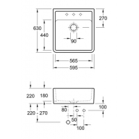 - Valik “Aukude puurimine tootja järgi”: Kui soovite, et tootja teeks ohutuse huvides augu puurimise tehases, valige see valik. Selleks vajame kraaniava(de) numbreid/asukohti, mille V & B peaksid teie jaoks puurima. Käsitsi käitatava valamu versiooni jaoks vajate liitmiku jaoks 1 kraaniava; ekstsentrilise tööga versiooni jaoks on vaja 2 auku (segisti ja ekstsentriline töö). Pange tähele allpool näidatud mõõtmete jooniseid, kuna pööratavate valamute avade asukohad võivad vasakpoolse ja kausi parema versiooni puhul olla erinevad. Muidugi saab valida ka võimaliku kolmanda augu seebi dosaatorile.