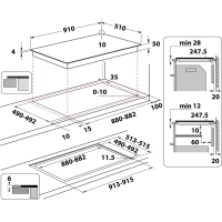 - Размеры выреза (Ш х Г): 880 x 490 мм