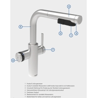 - Поворотный излив на 180° для смешанной и очищенной воды