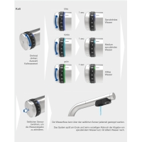 - Нажмите и коснитесь: выбор предварительно заданных типов воды и объемов в мл благодаря колесику масштабирования и