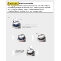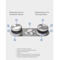 - Нажмите и коснитесь: выбор предварительно заданных типов воды и объемов в мл благодаря колесику масштабирования и интуитивно понятному сенсорному управлению