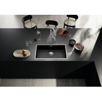 - Гармоничное сочетание поверхностей: монтажный край и излив расставляют стильные акценты из нержавеющей стали (перелив C и сливная система InFino)