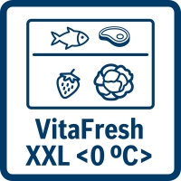 - VitaFresh XXL <0 °C>: дольше сохраняет свежесть продуктов в очень больших ящиках с контролируемой вентиляцией и температурой.