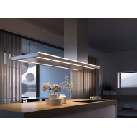 Поднимающийся пар отсасывается с внешних краев конструкции корпуса вытяжки и направляется к жировому фильтру позади нее. Благодаря высокой скорости потока на краю вытяжного колпака испарения от приготовления пищи не могут попасть на кухню даже при более низких настройках двигателя. Турбулентности нет, эффект сопротивления высок, а эффекты отскока роли не играют. Воздух поступает не на кухню, а прямо в вытяжку. Повышение эффективности за счет выделения кромок позволяет работать на более низких уровнях мощности, с меньшим потреблением энергии и меньшим уровнем шума.