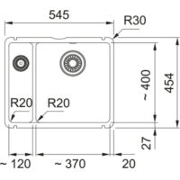 - Раковина: 370 x 400 x 190 и 120 x 400 мм