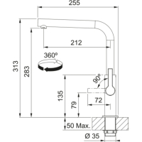 Franke Maris Slim L однорычажный смеситель, фиксированный излив высокого давления, хром