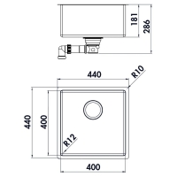 - Размеры раковины: 400 x 400 мм / глубина 180 мм