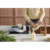 Коврик для слива воды Filso — практичный аксессуар для встраиваемых раковин. Он подходит для всех раковин, встраиваемых под столешницу и заподлицо, и его можно легко разместить рядом с раковиной на столешнице. Благодаря практичным продольным канавкам и небольшому наклону капающая вода может стекать прямо в раковину. Коврик для слива заменяет отсутствующую решетку для посуды и значительно облегчает мытье посуды, особенно на небольших кухнях. Коврик для сушки изготовлен из прочного силикона, не содержащего бисфенола-А, и впечатляет своей безопасностью для пищевых продуктов и простотой в уходе. Его можно мыть в посудомоечной машине, он выдерживает температуру от -40 до 230 °C.