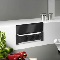 Практичная встраиваемая розетка Kapsa CON-AKTIV® расставляет современный акцент на существующей кухне. Он становится визуальным акцентом благодаря плоской крышке, которая доступна с различными рисунками поверхности. Благодаря небольшой глубине установки тройную розетку можно разместить как на рабочей поверхности, так и на боковых стенках и передних панелях. Он позволяет одновременно снабжать электропитанием различные кухонные электроприборы. Чтобы получить доступ к розеткам Schuko, просто откройте крышку. В закрытом состоянии защищает от пыли и грязи. Удлиненный питающий кабель обеспечивает широкие возможности при подключении розеточного элемента. Выход кабеля находится внизу слева. В качестве альтернативы вилкам Schuko на выбор предлагается вариант с бельгийско-французскими розетками.