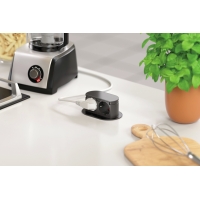 При легких загрязнениях. Место ок. Добавьте 400 мл воды и немного моющего средства в рабочую камеру и выберите программу очистки. Экологичная система очистки смягчает пригоревшие остатки, поэтому их легче удалить. Выдвижной. С 1 розеткой Schuko, двойным зарядным устройством USB A/C и функцией зарядки QI в крышке. Для установки на столешницу.