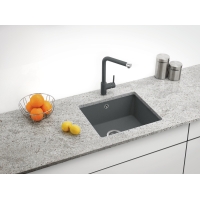Комплект мойки, состоящий из встраиваемой мойки Singoli 600 и однорычажного смесителя Drive 15, представлен в пуристической элегантности. Утопленный вид, придающий ламинату вид декор столешницы виден и обеспечивает комфортную работу на одном уровне. В качестве материала используется стойкий Цин-Награнит. Искусственный камень, вдохновленный природой, чрезвычайно легко чистится, безопасен для пищевых продуктов и долговечен. Это означает, что композитную мойку можно использовать с арматурой для подачи горячей воды в диапазоне +/- 100 °C. Это сочетается со штуцером высокого давления с высоким изливом и боковым однорычажным смесителем с керамическим картриджем. Благодаря широкому диапазону поворота на 360°, смеситель заподлицо можно легко использовать. Он изготовлен из прочной нержавеющей стали с черной отделкой. Мойка с одной чашей предназначена для установки под столешницей. Поэтому сверление летка производится непосредственно в рабочей поверхности. В комплект входит хромированный сетчатый клапан с вращающимся эксцентриком и пробковый клапан.