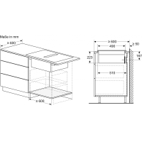 - Требуемый размер ниши (ВxШxГ мм: 223 x 750 x (490 - 500)