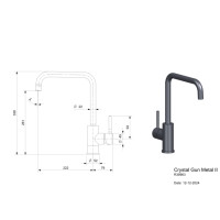 Reginox Crystal Gun Metal II, фиксированный излив высокого давления