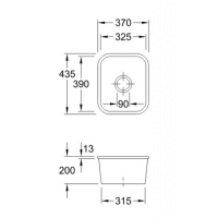 - Размеры раковины: Д x Ш 370 x 435 мм