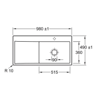 - Опция «Сверление отверстий производителем»: Если из соображений безопасности вы хотите, чтобы сверление отверстий производилось на заводе, выберите эту опцию. Для этого нам нужны номера/положения леточных отверстий, которые V & B должны просверлить для вас. Для версии мойки с ручным управлением необходимо 1 отверстие под смеситель; для версии с эксцентриковым управлением необходимо 2 отверстия (для смесителя и эксцентрикового управления). Обратите внимание на габаритные чертежи, показанные ниже, поскольку положения отверстий в двусторонних мойках могут быть разными для версий с левой и правой чашей.